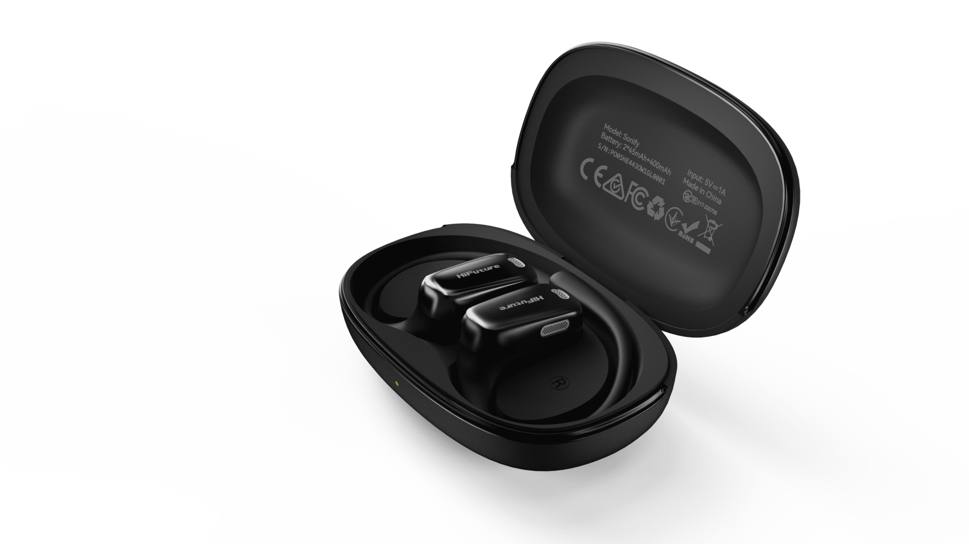 Avec ses lignes sobres et modernes, Sonify combine esthétique et fonctionnalité. Le design open‑ear permet de profiter de votre musique tout en restant conscient de ce qui vous entoure, sans compromis sur le confort.